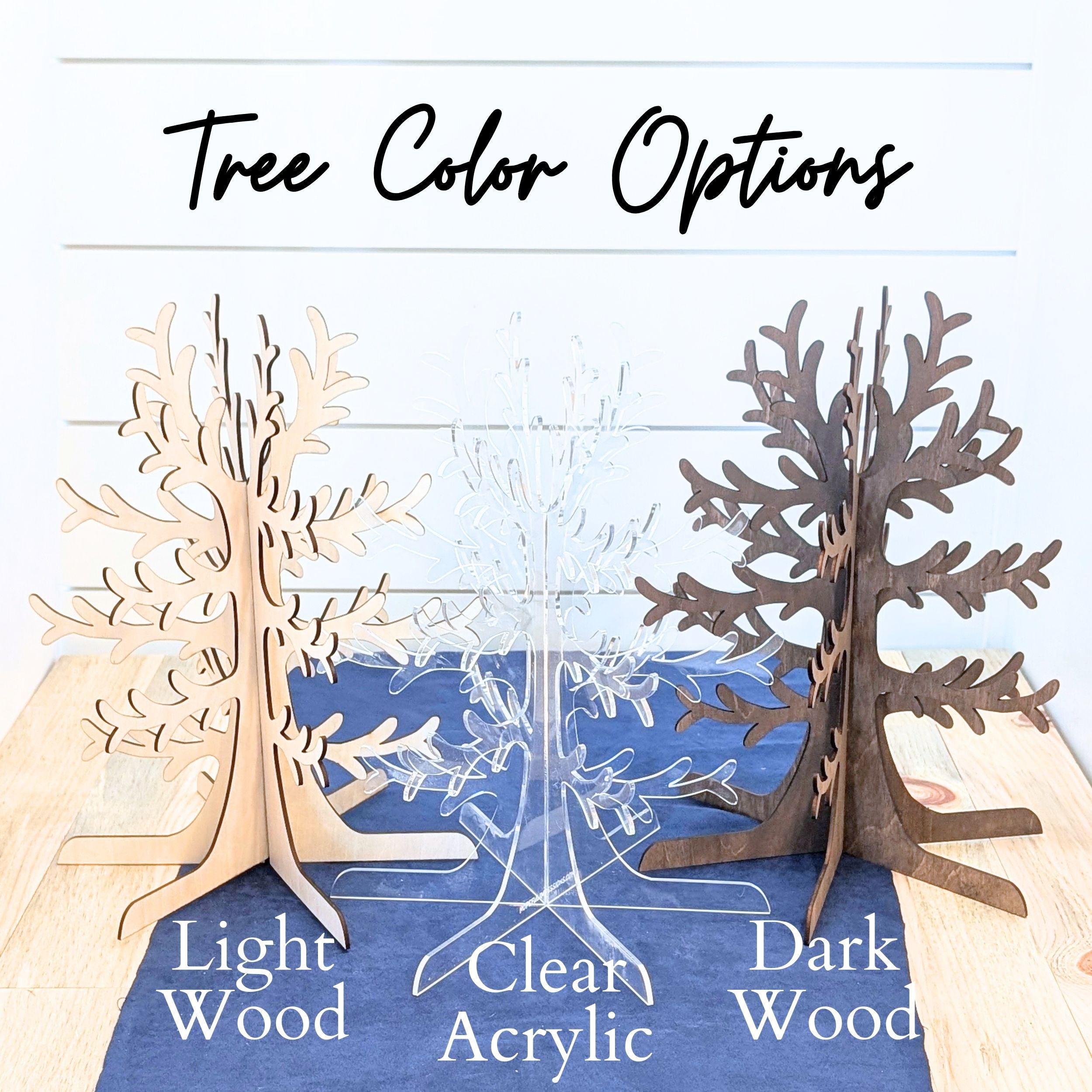 3 wood tree pieces that fit together to create a standing tree